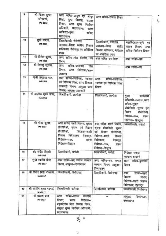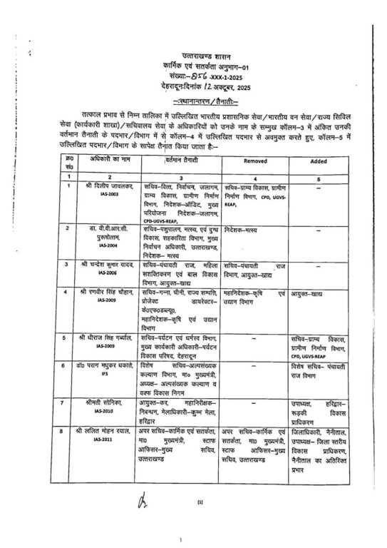 जारी आदेश के अनुसार, भारतीय प्रशासनिक सेवा (IAS), भारतीय वन सेवा (IFS), राज्य सिविल सेवा (PCS) तथा सचिवालय सेवा के अधिकारियों को तत्काल प्रभाव से नई तैनाती दी गई है।