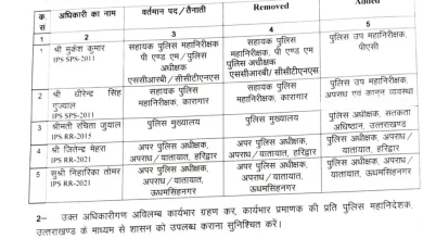 देहरादून :(बड़ी खबर) इन IPS अधिकारियों के हुए तबादले