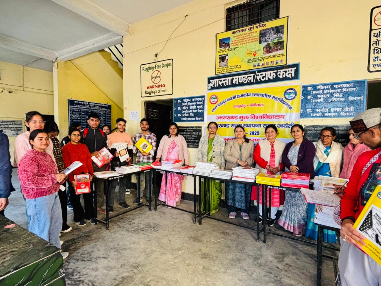 कार्यक्रम की अध्यक्षता प्राचार्य प्रो सीमा श्रीवास्तव ने की। इस दौरान यूओयू के क्षेत्रीय कार्यालय हल्द्वानी से डॉ रेखा बिष्ट एवं मधु डोगरा विशेष तौर पर मौजूद रहीं। अध्ययन केंद्र की समन्वयक डॉ रीता दुर्गापाल ने बताया कि अध्ययन केंद्र द्वारा पूरे माहभर छात्रों के लिए निःशुल्क पुस्तक वितरण अभियान चलाया जा रहा है।