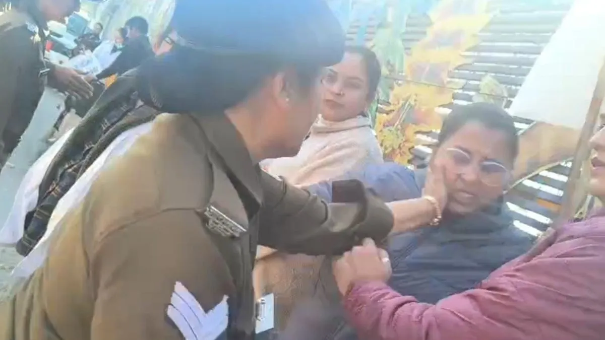 महिला अभ्यर्थी और पुलिस के बीच मारपीट